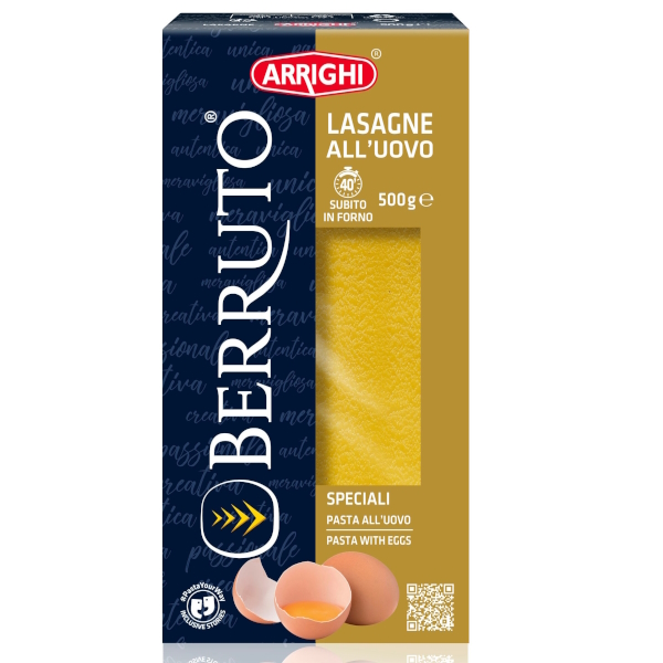 Our EGG LASAGNE | N ° 191 are part of the large selection of Pasta ARRIGHI produced only and exclusively with durum wheat semolina and, in this case, the addition of egg. They are a tribute to the Italian culinary TRADITION par excellence. The flat and full-bodied dough gives structure to the dish since the times of the most ancient and famous Greek philosophers.